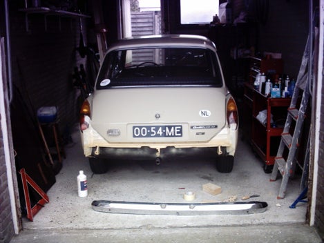 Eind goed al goed ! Toen ik de Glider in 2002 kocht kreeg ik er een nieuw spatbord bij. Dit was nog een orginele via Austin-Rover geleverd. Is anno nu erg lastig aan te komen, daar de originele fabrieksmallen destijds zijn vernietigd.. Of je moet genoegen nemen met (mindere kwaliteit) after market spatborden. Welke via ebay.uk te koop zijn.