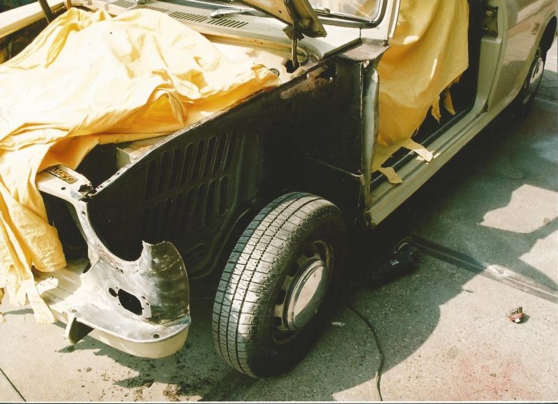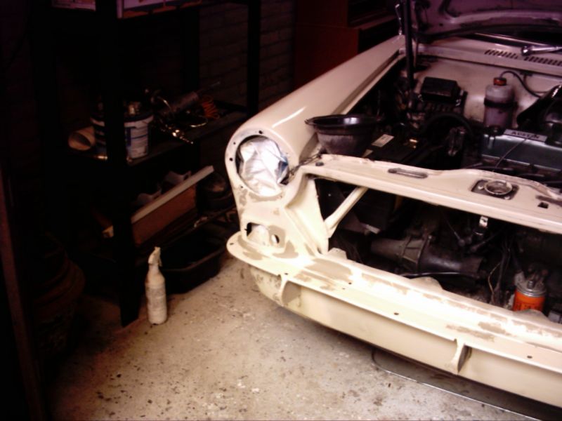 Plaatwerk rond koplamp en richtingaanwijzer was ook erg slecht. Van een sloper is het nodige plaatwerk overgezet.